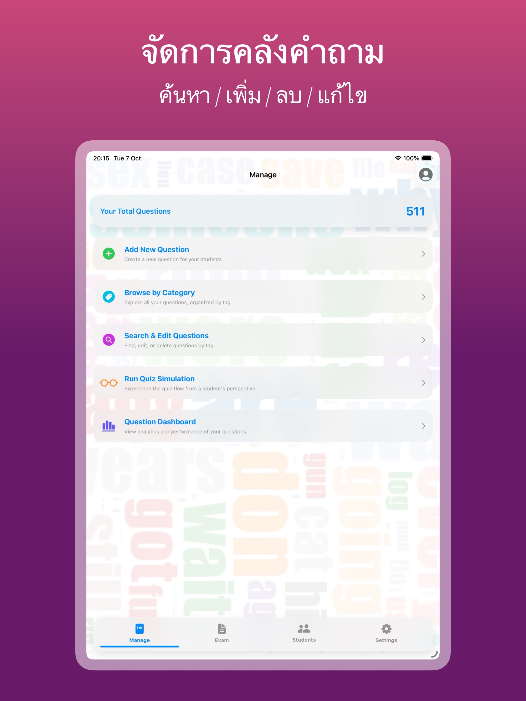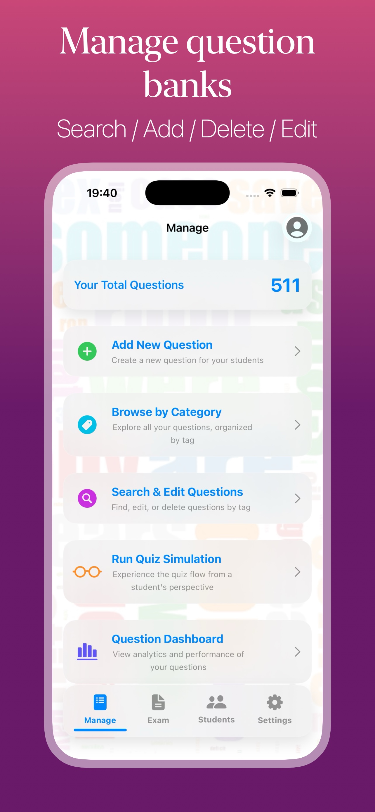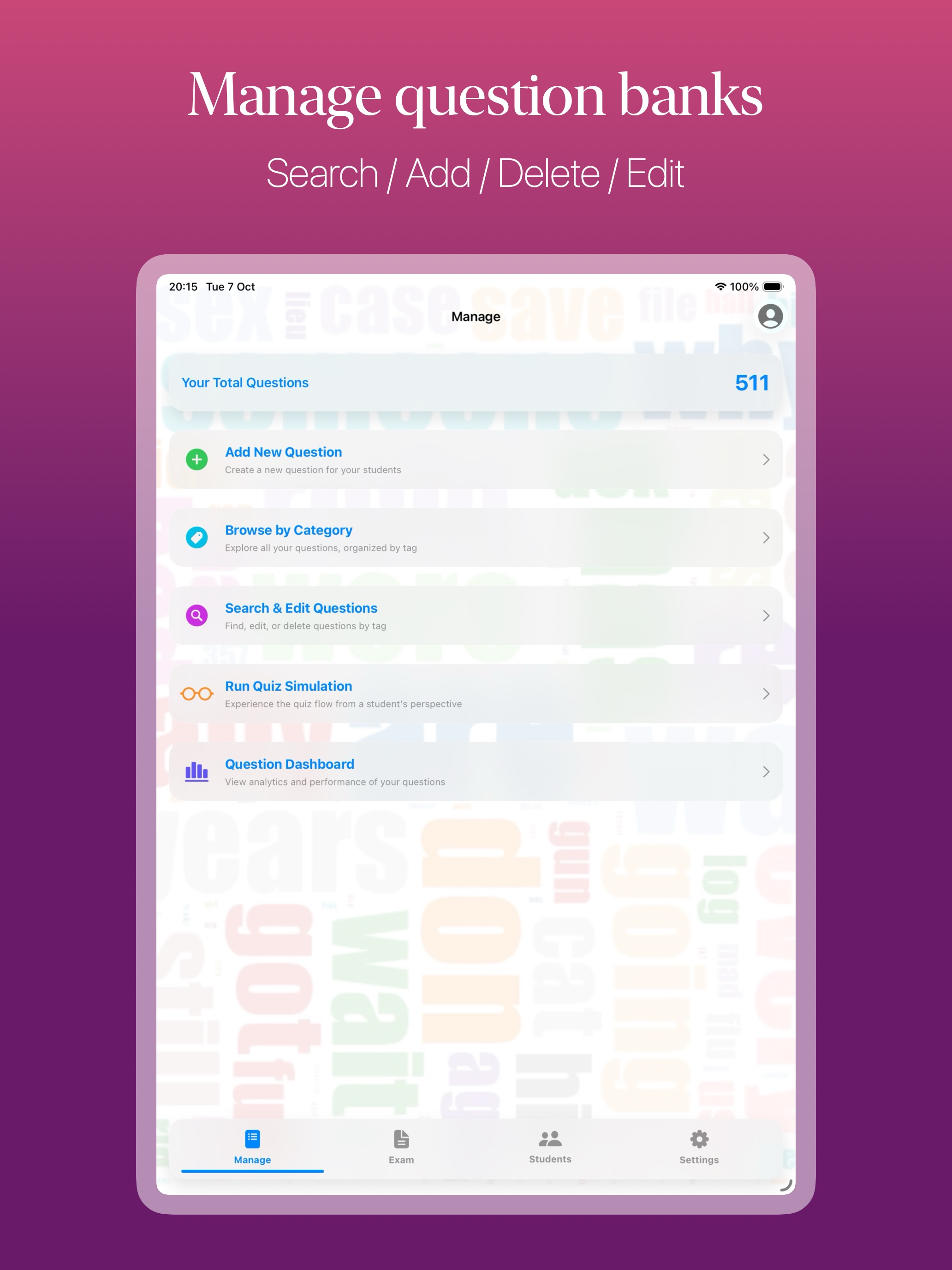 - Unlimited Question Bank (For Teachers): Create, Search, Edit, and Delete questions without limits.