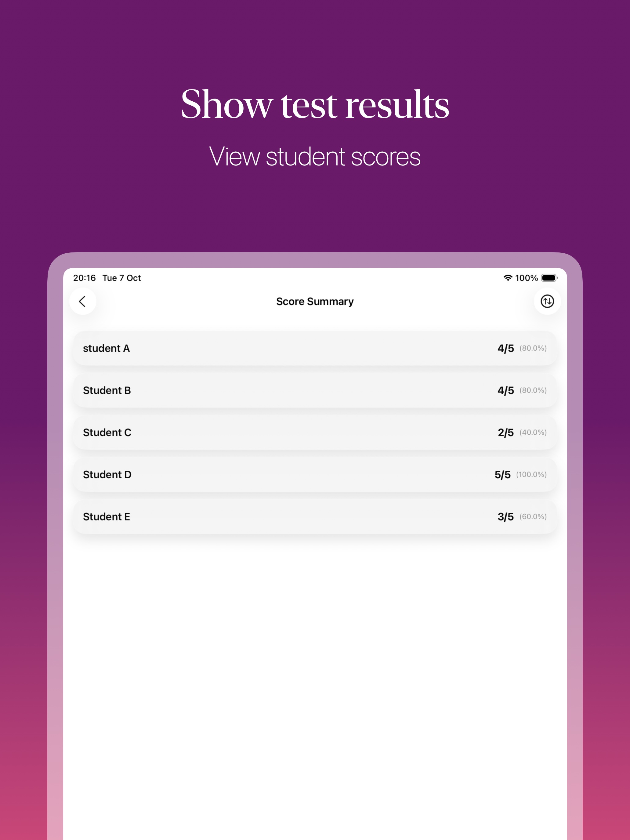 - Advanced Student Analytics: Access detailed individual scores, mastery statistics, and in-depth reporting.